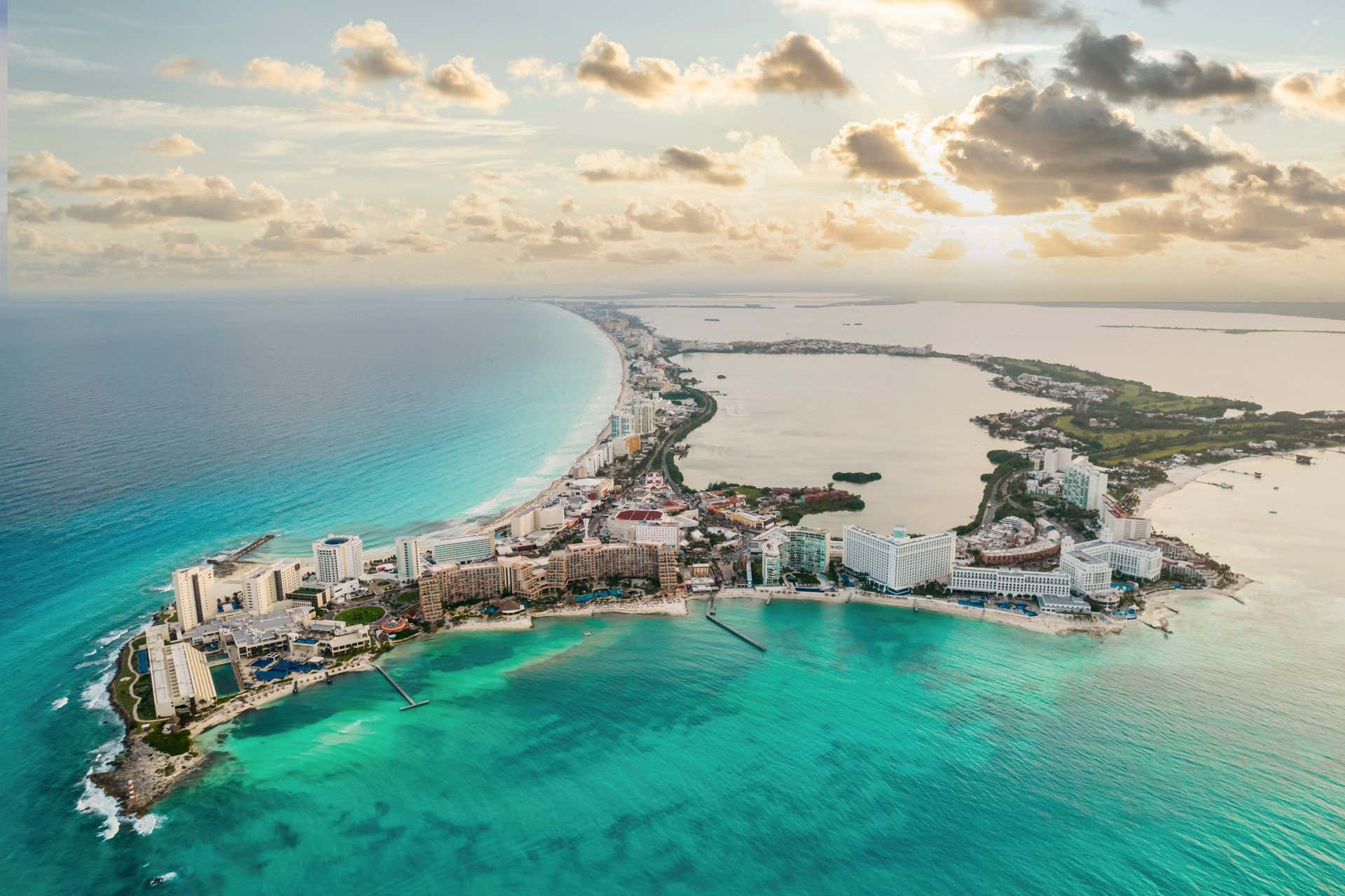 Desse ponto, iniciaremos o voo de volta enquanto desfrutamos das cores do entardecer sobre o Caribe mexicano.
